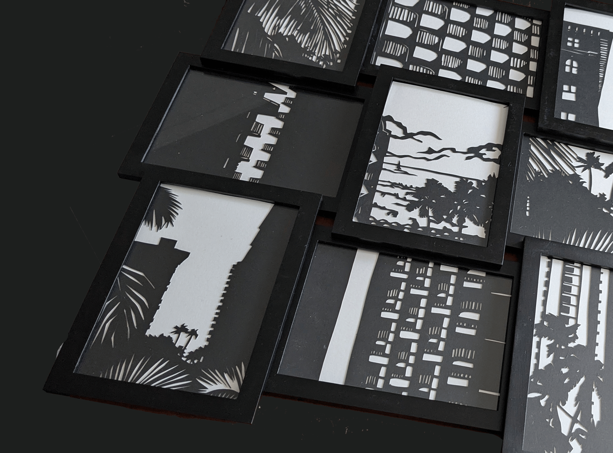 Pieces inspired by the patterns of palm trees and architecture around Hawaii.